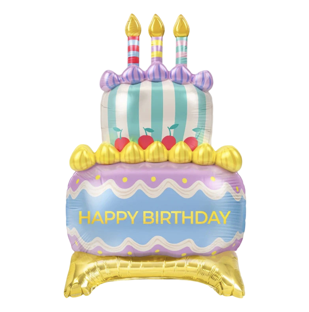 Decora tu fiesta de cumpleaños con estilo con nuestro Globo con Base Foil en forma de tarta y mensaje “Happy Birthday”, diseñado para colocarse sin necesidad de helio. Ideal para cumpleaños, celebraciones infantiles y fiestas temáticas, este globo añade un toque divertido y elegante a cualquier mesa o espacio.
