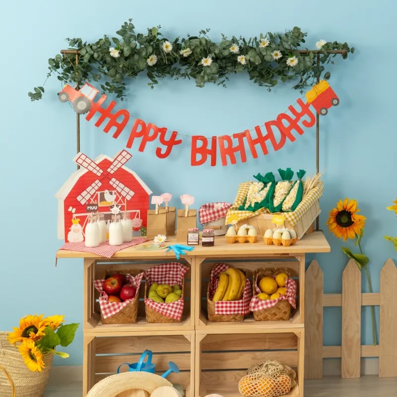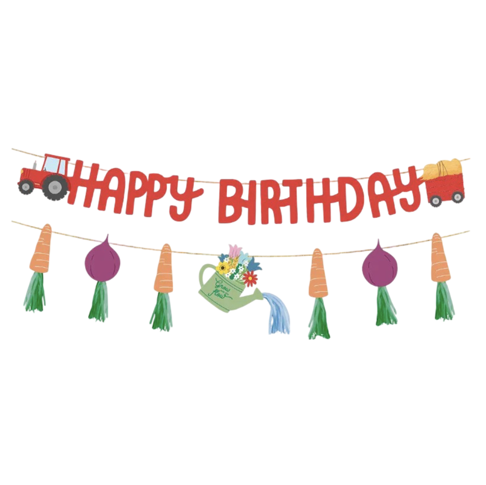 Decora tu fiesta con estilo con nuestra guirnalda temática de granja “Happy Birthday”. Con divertidos motivos de tractor, camión y vegetales, esta guirnalda es perfecta para cumpleaños infantiles y fiestas temáticas.