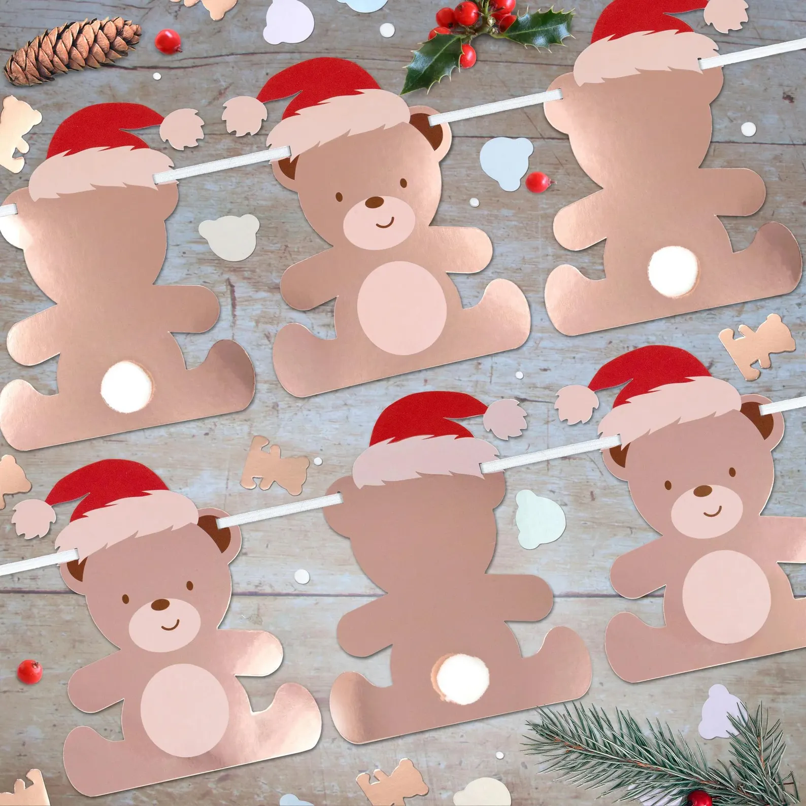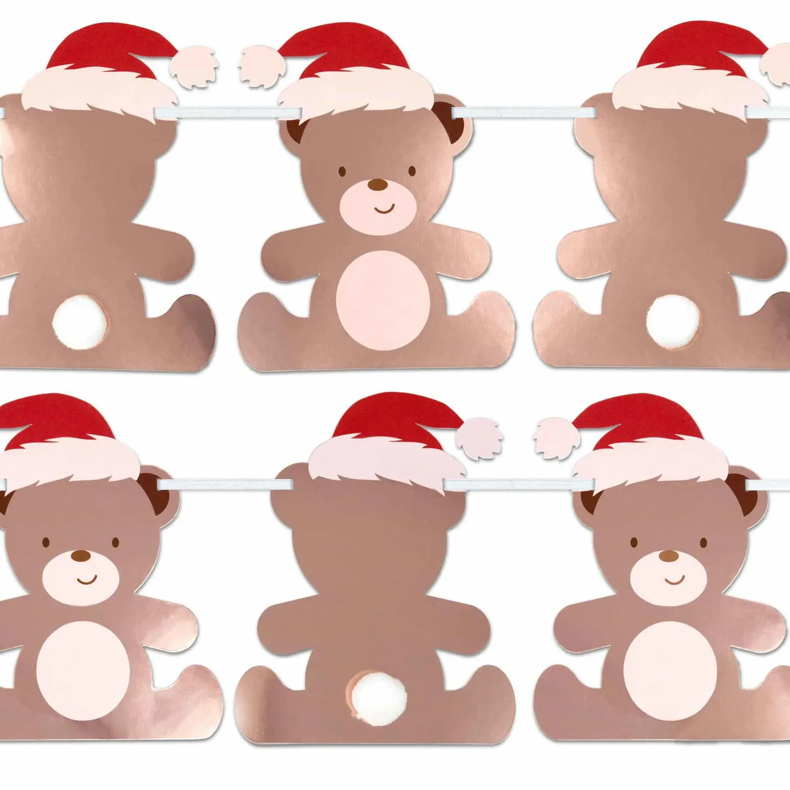 Fabricada en material resistente y ligero, es fácil de colgar en paredes, puertas o alrededor de mesas. Sus diseños adorables con ositos Teddy Bear y detalles navideños aportan un toque dulce y encantador que encantará tanto a niños como a adultos.