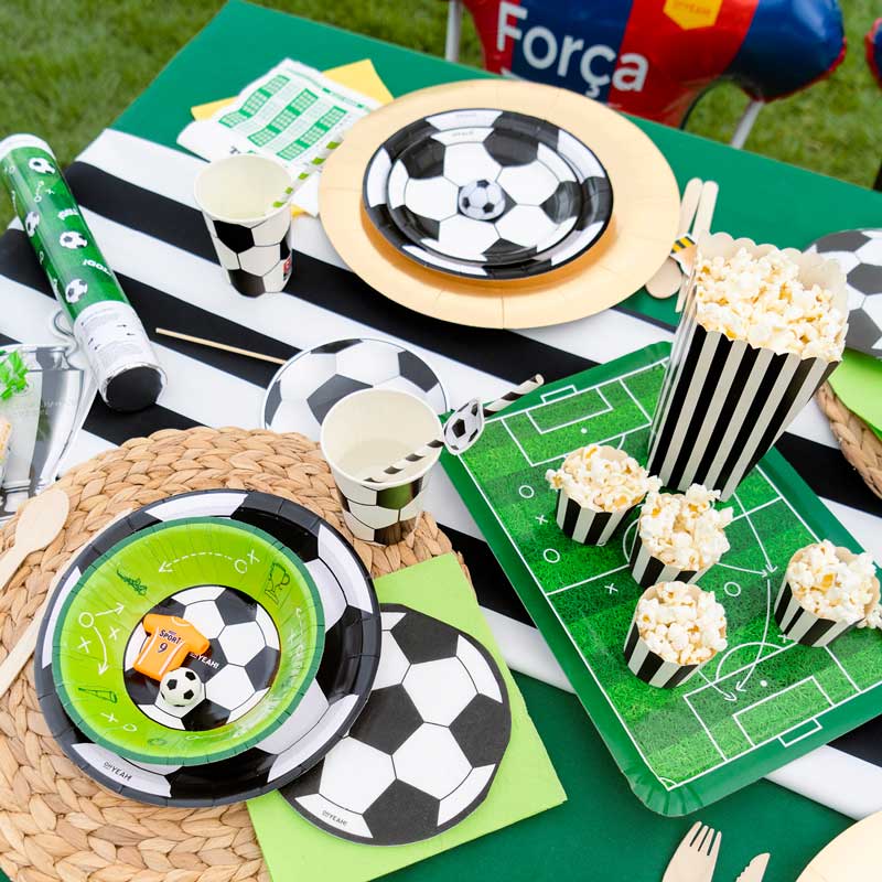 ¡Haz tu fiesta aún más especial combinando estas pajitas con nuestros otros productos de fútbol, como vasos, platos y globos temáticos!
