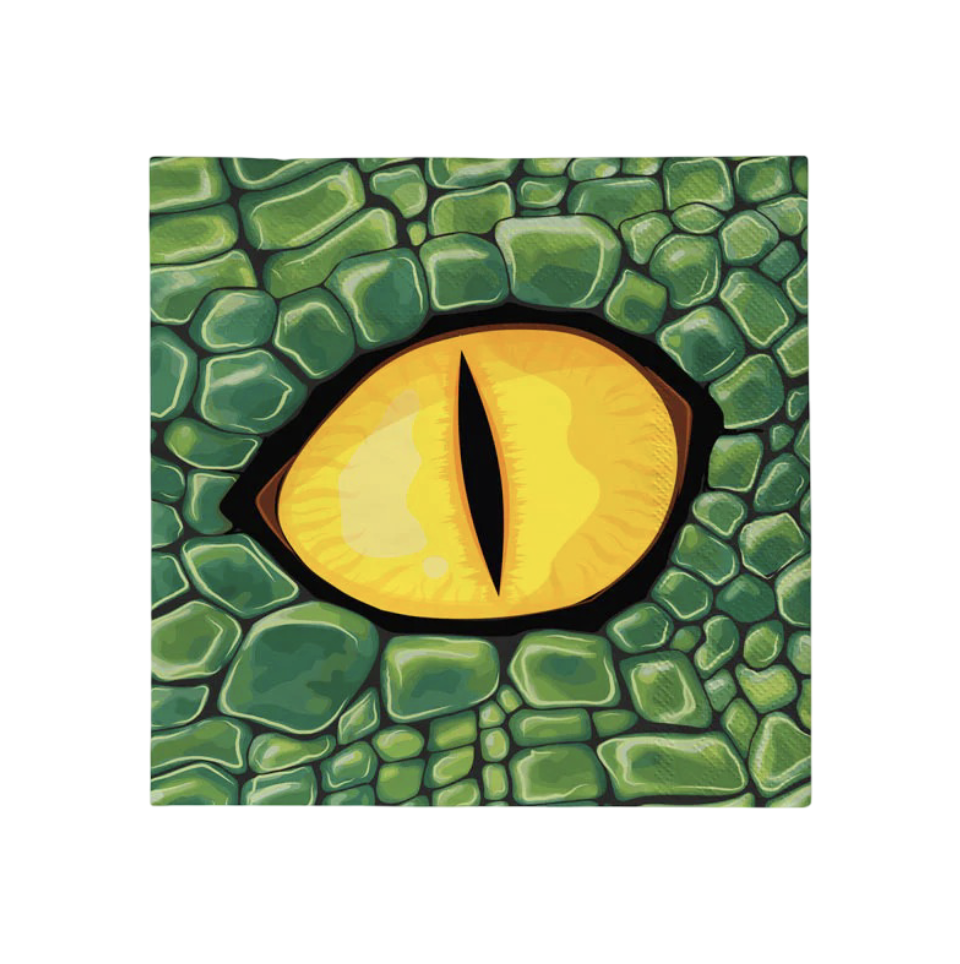 ¡Haz rugir tu fiesta con nuestras servilletas con Ojo de Dinosaurio! Cada servilleta muestra un ojo de dinosaurio súper realista que hará que tus invitados sientan que un T-Rex los está observando… ¡pero solo para asegurarse de que todos coman y se diviertan!